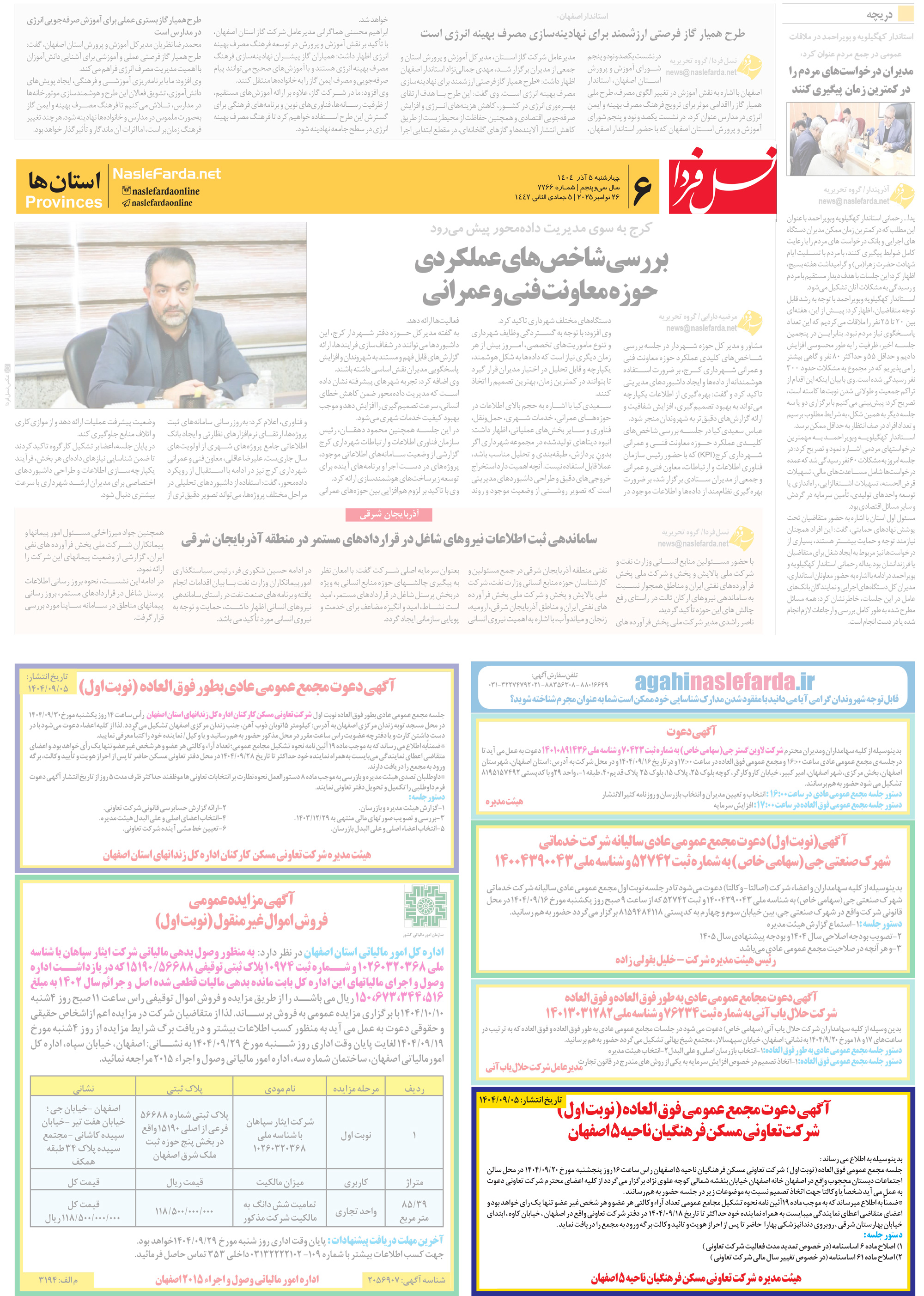 اطلاعیه مجمع عمومی فوق العاده سالیانه نوبت اول